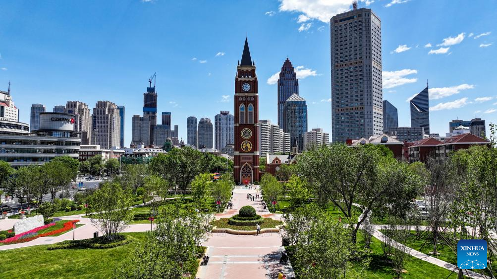 This drone photo shows a pocket park in Heping District of Tianjin, north China, June 3, 2025.