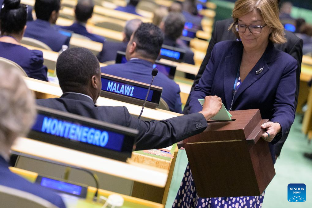 The UN General Assembly holds a meeting to elect members of the UN Economic and Social Council at the UN headquarters in New York, on June 4, 2025. Eighteen states, including China, were elected on Wednesday into the UN Economic and Social Council (ECOSOC), the coordinating body for the economic and social work of UN agencies and funds, for a three-year term. (Manuel Elias/UN Photo/Handout via Xinhua)