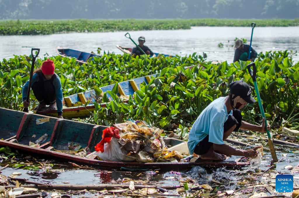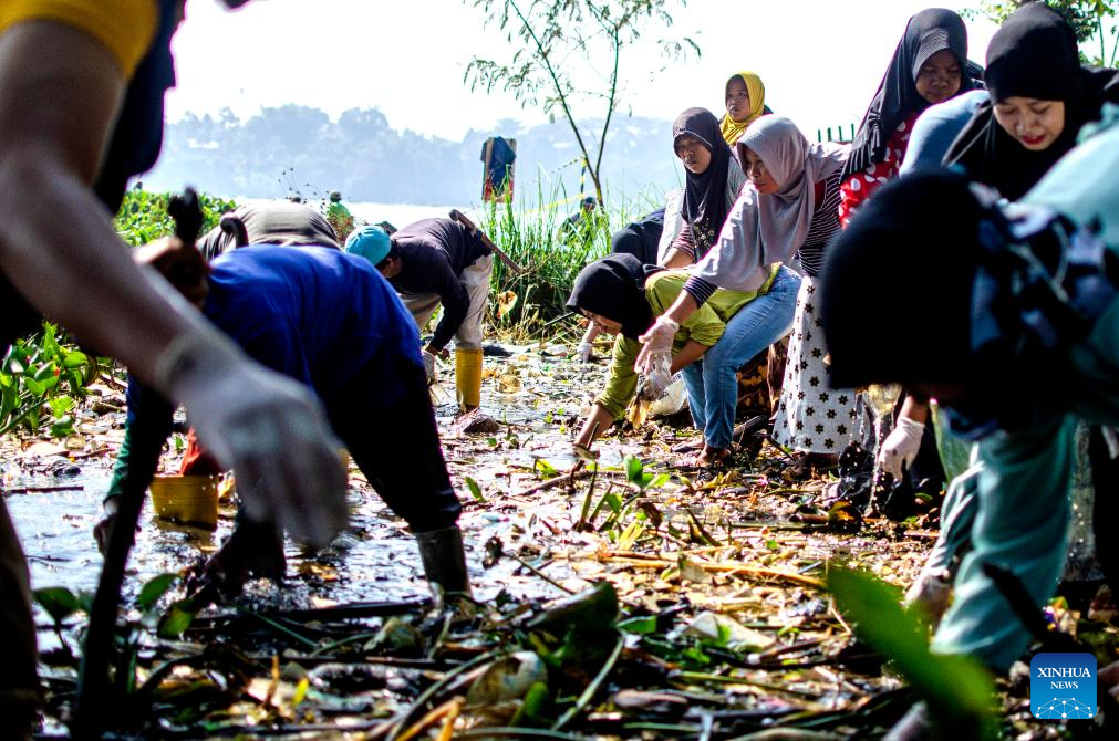 People sort and collect plastic garbage as a part of a campaign marking the upcoming World Environment Day, observed annually on June 5, on Citarum River in West Bandung Regency, West Java, Indonesia, June 4, 2025. (Photo by Septianjar Muharam/Xinhua)