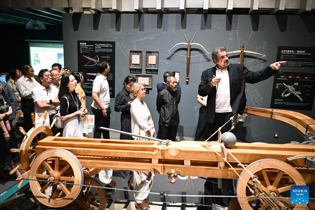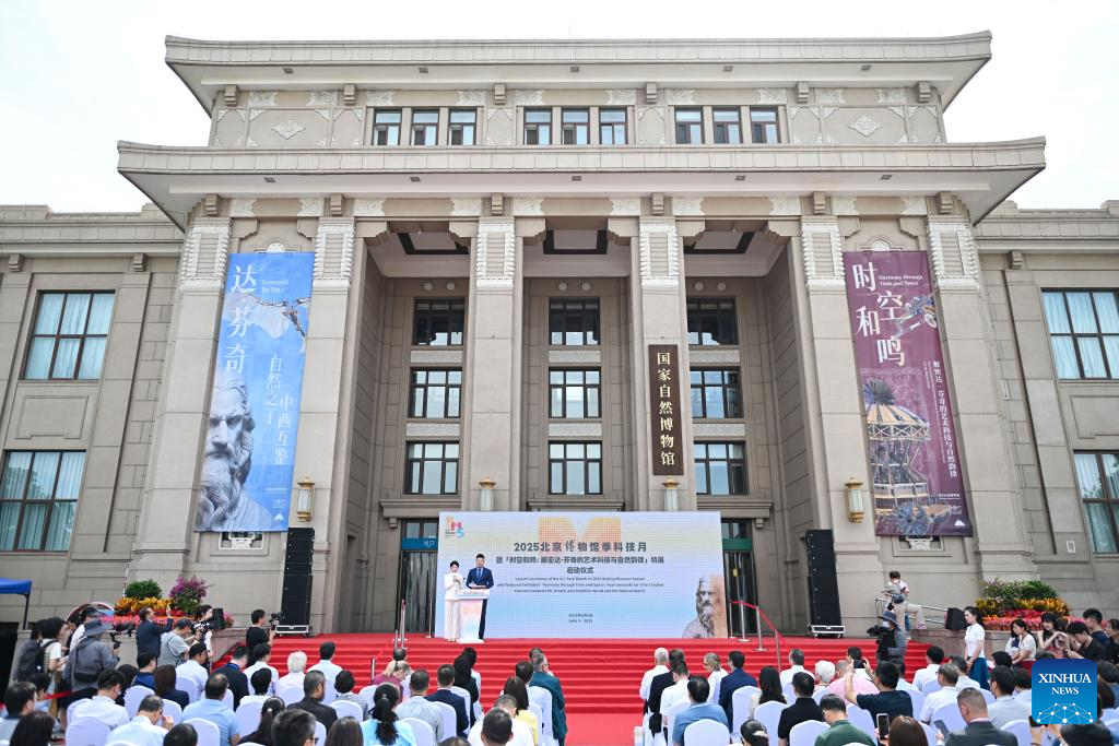 This photo taken on June 5, 2025 shows the launch ceremony of the Sci-tech Month of 2025 Beijing Museum Season and Featured Exhibition "Harmony through Time and Space: How Leonardo da Vinci Created Concord between His Artistic and Scientific World and the Natural World" at the Natural History Museum of China in Beijing, capital of China, June 5, 2025. The exhibition kicked off here on Thursday and will last until October 19. (Xinhua/Chen Zhonghao)