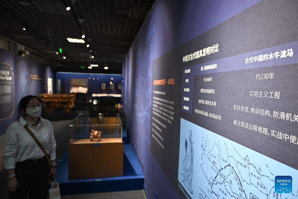 A visitor views a display board during the exhibition "Harmony through Time and Space: How Leonardo da Vinci Created Concord between His Artistic and Scientific World and the Natural World" at the Natural History Museum of China in Beijing, capital of China, June 5, 2025. The exhibition kicked off here on Thursday and will last until October 19. (Xinhua/Chen Zhonghao)