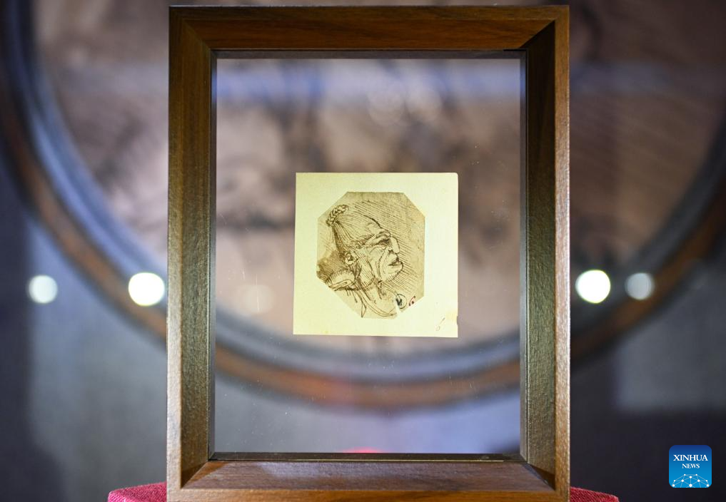 This photo taken on June 5, 2025 shows a fragment of Leonardo da Vinci's manuscript during the exhibition "Harmony through Time and Space: How Leonardo da Vinci Created Concord between His Artistic and Scientific World and the Natural World" at the Natural History Museum of China in Beijing, capital of China, June 5, 2025. The exhibition kicked off here on Thursday and will last until October 19. (Xinhua/Chen Zhonghao)