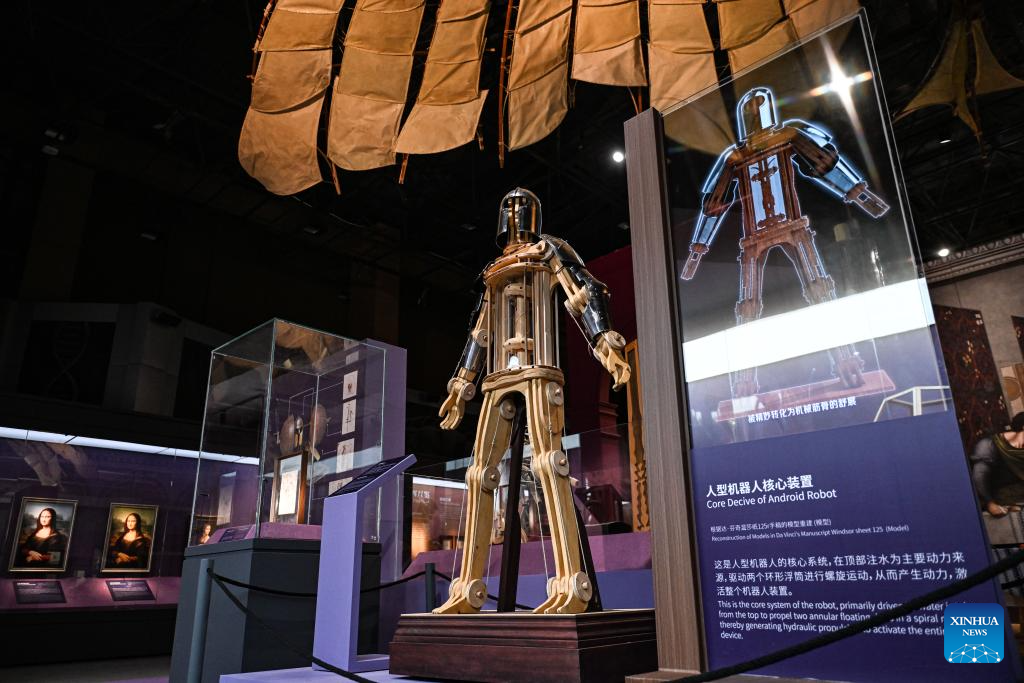 This photo taken on June 5, 2025 shows an android robot model reconstructed from Leonardo da Vinci's manuscript during the exhibition "Harmony through Time and Space: How Leonardo da Vinci Created Concord between His Artistic and Scientific World and the Natural World" at the Natural History Museum of China in Beijing, capital of China, June 5, 2025. The exhibition kicked off here on Thursday and will last until October 19. (Xinhua/Chen Zhonghao)