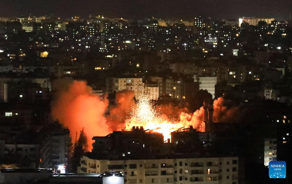The Israeli military launched airstrikes Thursday evening on buildings in several areas of Beirut's southern suburbs after evacuation warnings of attacking Hezbollah military infrastructure in the area. (Xinhua/Bilal Jawich)