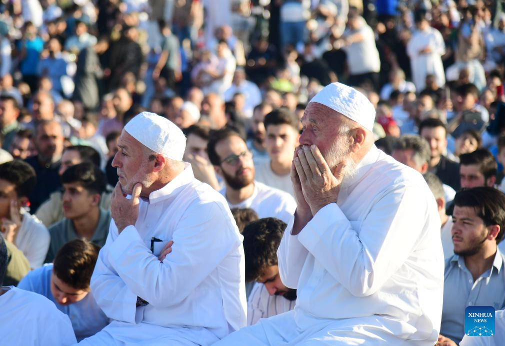 People participate in an Eid al-Adha morning prayer in Damascus, Syria, on June 6, 2025. (Photo by Ammar Safarjalani/Xinhua)