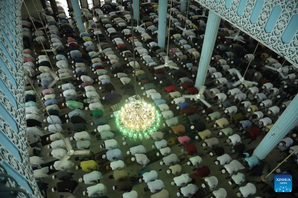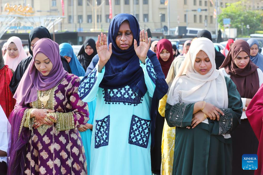 People offer Eid al-Adha prayers in Colombo, Sri Lanka, June 7, 2025. (Photo by Ajith Perera/Xinhua)