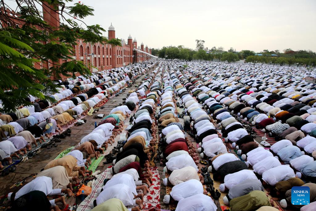 People offer Eid al-Adha prayers in Dhaka, Bangladesh, June 7, 2025. (Photo by Habibur Rahman/Xinhua)