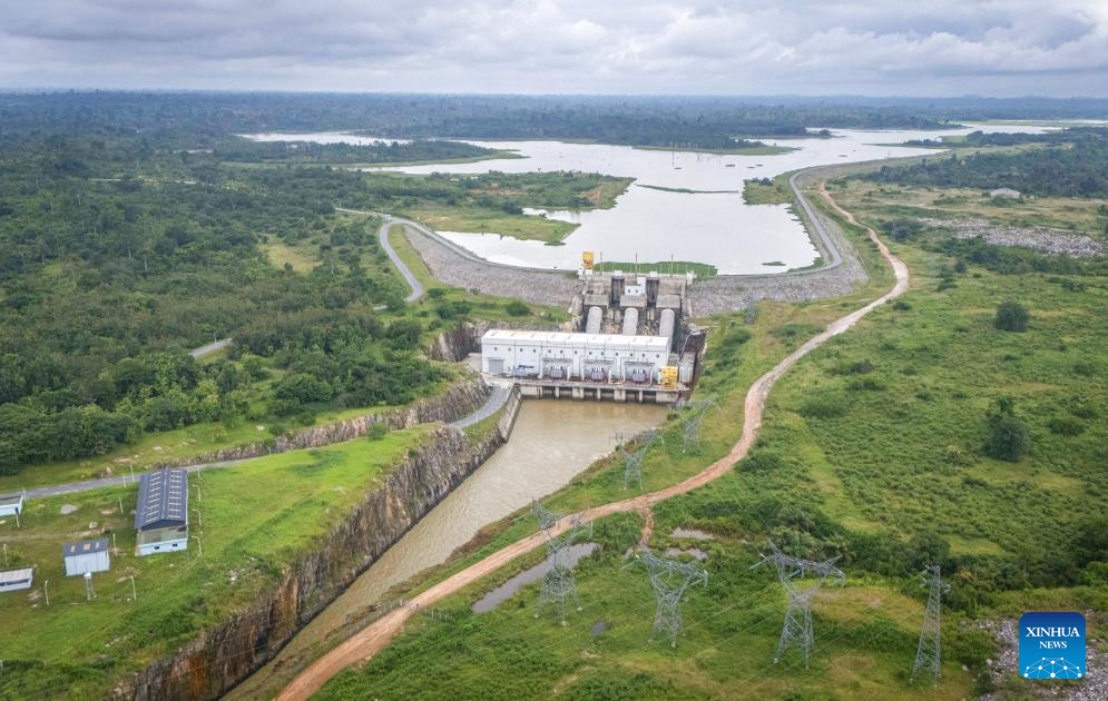 An aerial drone photo taken on May 28, 2025 shows the Gribo-Popoli Hydroelectric Power Plant in Soubre, Cote d'Ivoire. (Xinhua/Wang Guansen)