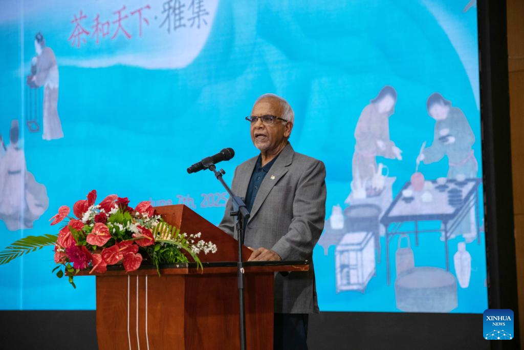 Mauritian President Dharam Gokhool addresses a cultural event "Tea for Harmony: Yaji Cultural Salon" in Port Louis, Mauritius, June 7, 2025. (China Cultural Center in Mauritius/Handout via Xinhua)