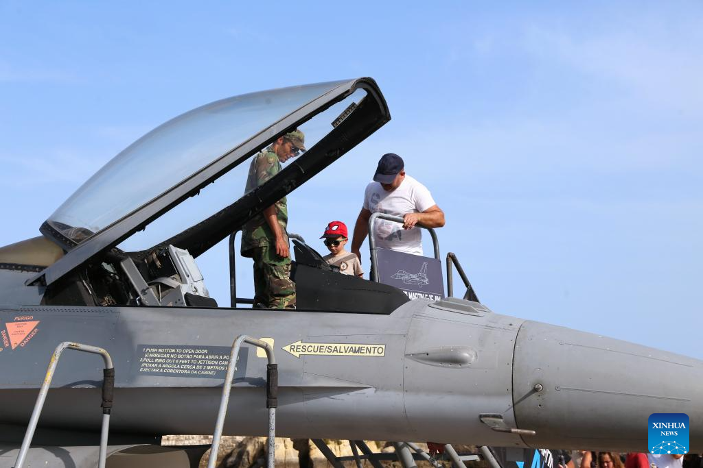 Visitors view an aircraft of the Portuguese Air Force in Lagos, Portugal, June 8, 2025. Portugal will hold its National Day military parade on June 10 in the southern coastal city of Lagos. On June 8, the armed forces organized an open day event, featuring exhibition booths and inviting the public to interact with soldiers and various types of military equipment. (Xinhua/Xun Wei)