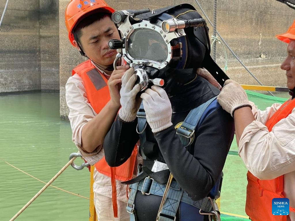 This photo taken on March 25, 2024 shows a worker preparing to dive for the rehabilitation work at the Kainji Hydropower Plant in Niger State, Nigeria. (PowerChina Huadong Engineering Corporation Limited/Handout via Xinhua)