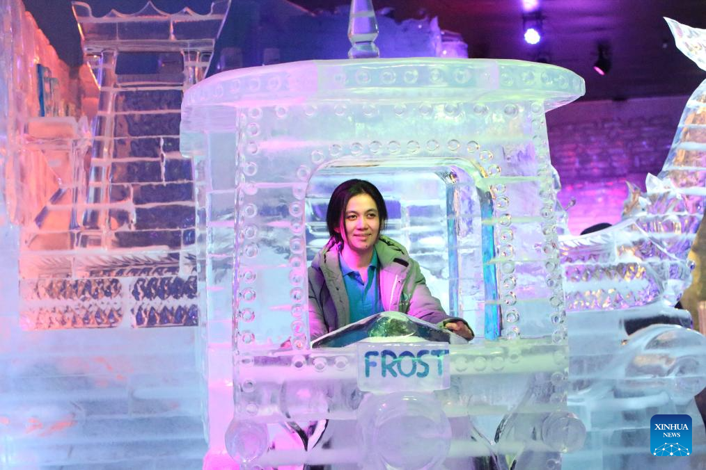 Tourists visit the Frost Magical Ice of Siam in Chonburi Province, Thailand, June 10, 2025. The Frost Magical Ice of Siam, covering an area of 30,000 square meters, is kept at a temperature of minus 10 degrees Celsius. (Xinhua/Rachen Sageamsak)