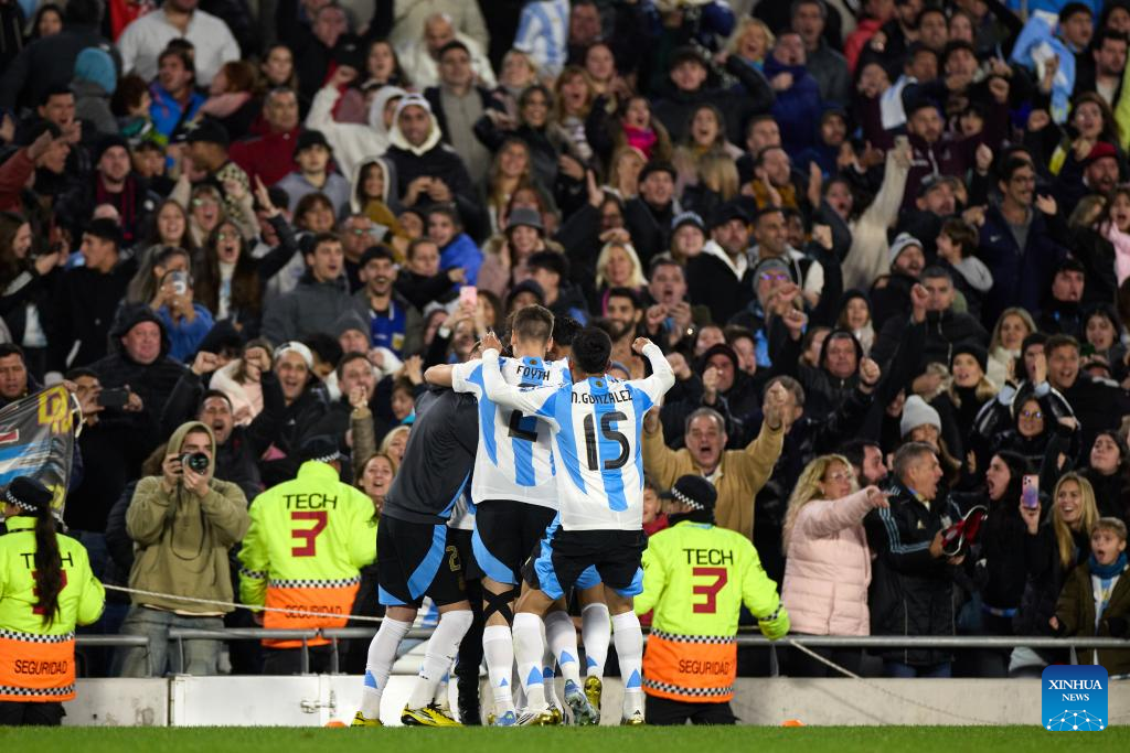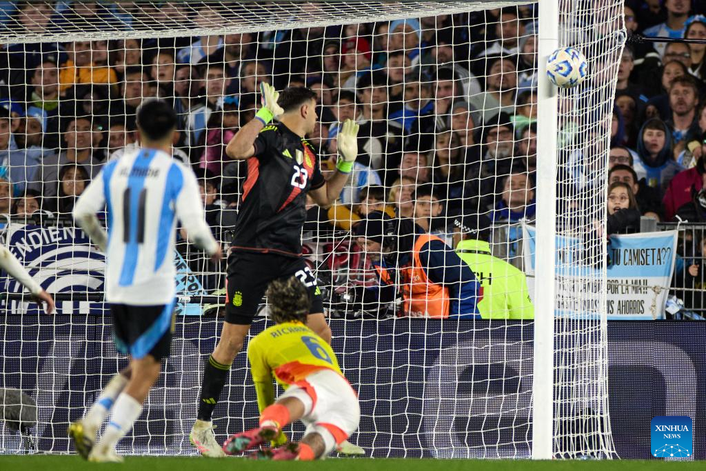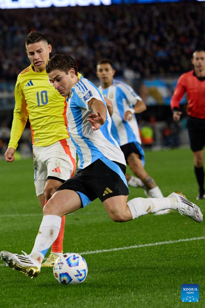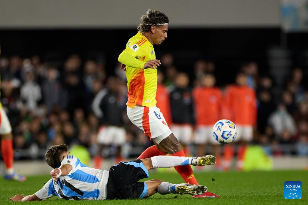 BUENOS AIRES, June 10 (Xinhua) -- Thiago Almada struck late as Argentina salvaged a 1-1 home draw against Colombia in their FIFA World Cup qualifier on Tuesday.