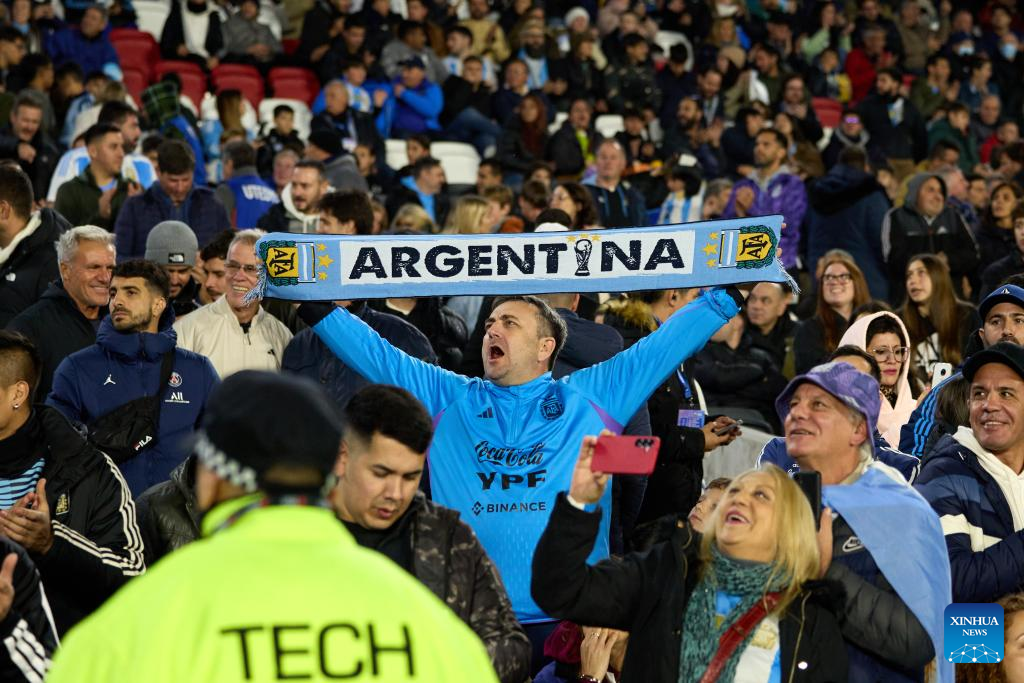 Supporters of Argentina are seen before the 2026 FIFA World Cup CONMEBOL Qualifier football match between Argentina and Colombia in Buenos Aires, Argentina, June 10, 2025. (Xinhua/Meng Dingbo)
