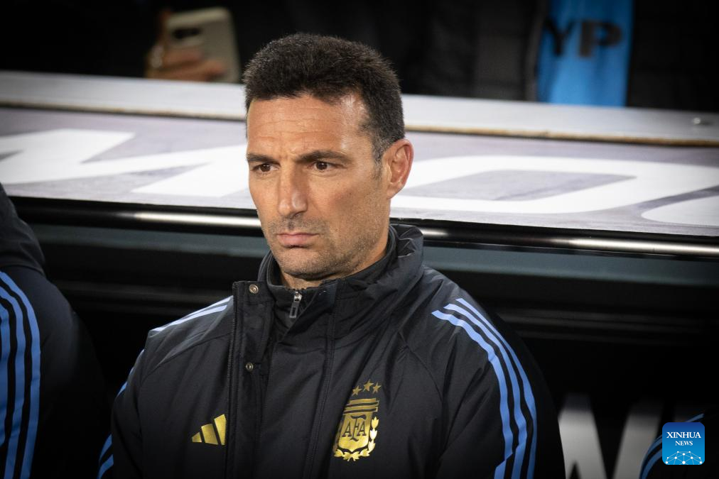 Argentina's head coach Lionel Scaloni is seen before the 2026 FIFA World Cup CONMEBOL Qualifier football match between Argentina and Colombia in Buenos Aires, Argentina, June 10, 2025. (Photo by Martin Zabala/Xinhua)