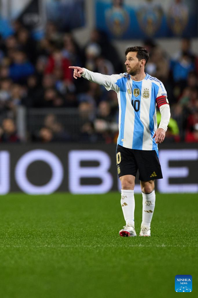 Lionel Messi of Argentina is seen during the 2026 FIFA World Cup CONMEBOL Qualifier football match between Argentina and Colombia in Buenos Aires, Argentina, June 10, 2025. (Xinhua/Meng Dingbo)