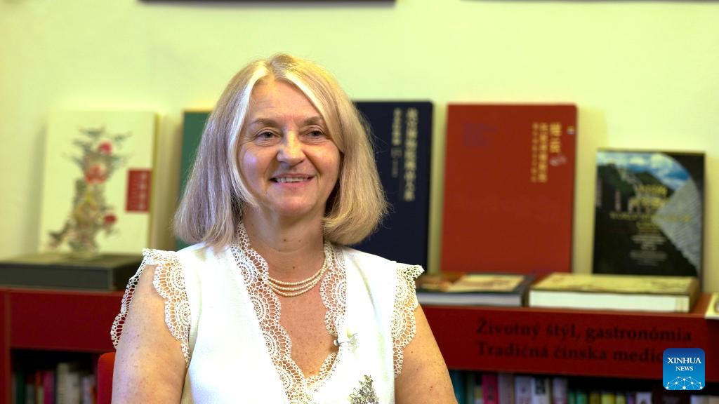 Olga Doktorova, director of the State Scientific Library in Banska Bystrica, is interviewed in Banska Bystrica, Slovakia, on June 5, 2025. (Photo by Peter Lahky/Xinhua)