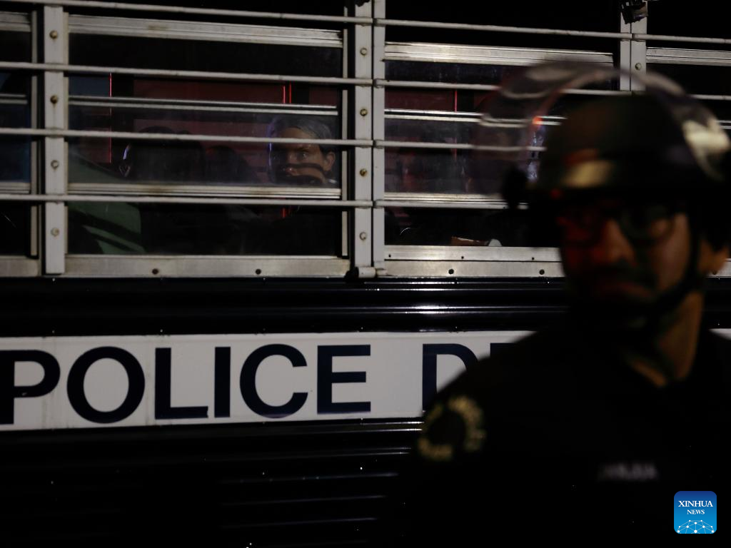 Protesters being arrested are pictured in Los Angeles, the United States, June 11, 2025. Nearly 400 people in immigration protests have been arrested or detained by the Los Angeles Police Department since Saturday, media reports said.