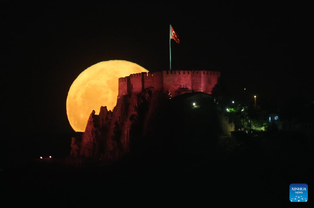 A full moon appears over Ankara Castle in Ankara, Türkiye, on June 11, 2025. (Mustafa Kaya/Handout via Xinhua)