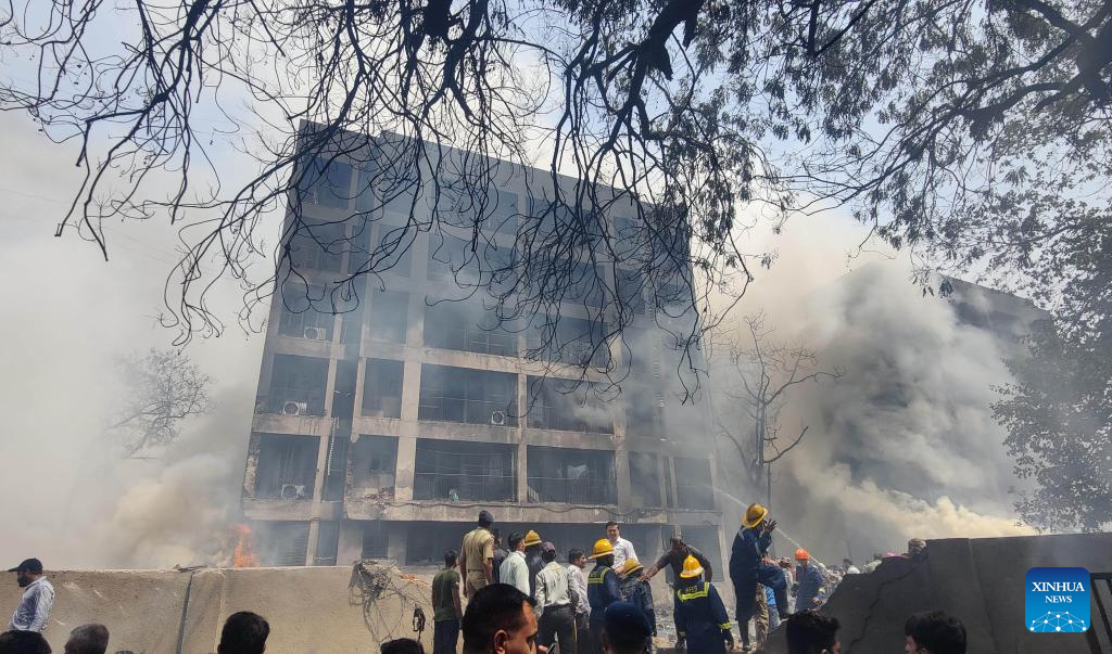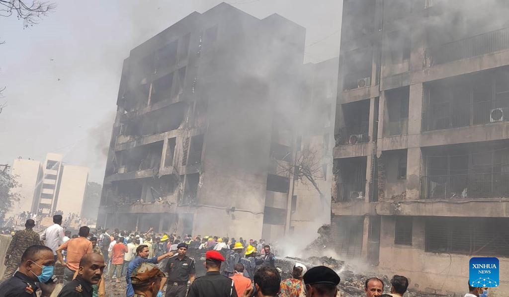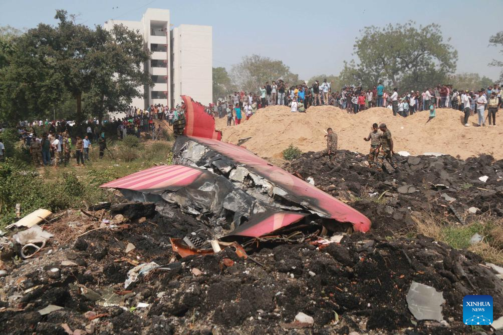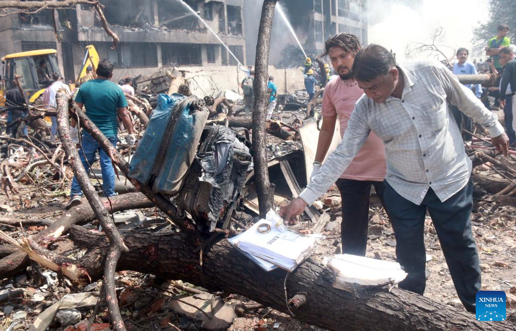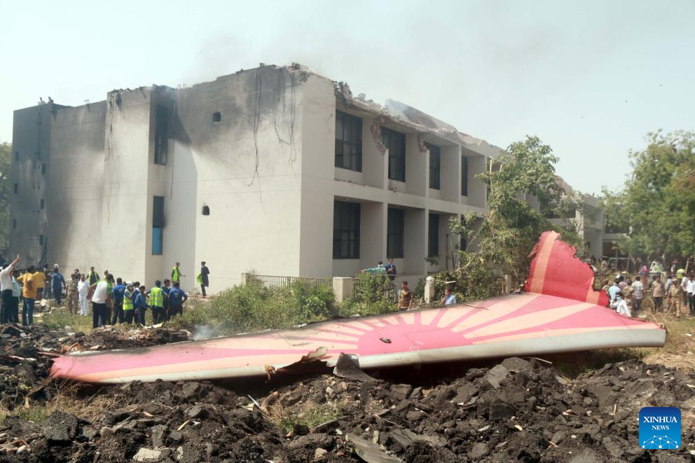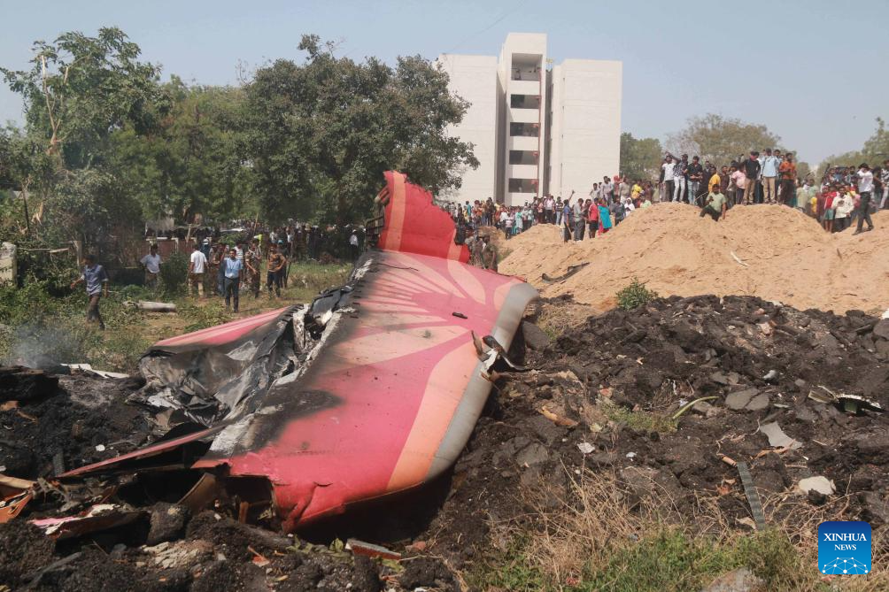 NEW DELHI, June 12 (Xinhua) -- An Air India flight to London with 242 people on board, including two pilots and 10 cabin crew members, crashed Thursday shortly after takeoff from an airport in the western Indian state of Gujarat, officials said.
