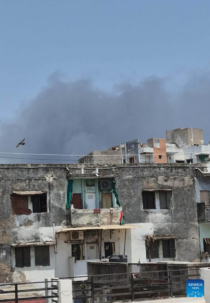 Smoke comes out from a site of a plane crash in Ahmedabad of India's Gujarat state, June 12, 2025. An Air India flight to London crashed Thursday shortly after takeoff from an airport in the western Indian state of Gujarat, officials said.