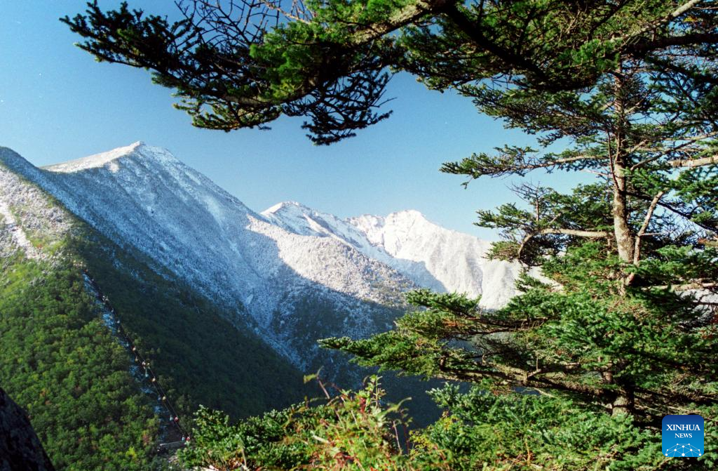 This undated file photo shows a view of Taibai Mountain, the main summit of Qinling Mountains in Baoji City, northwest China's Shaanxi Province. Baoji, facing Qinling mountains in the south, loess terrace in the north, with Weihe River flowing through the city from west to east, has made great efforts in its ecological management and green development in recent years. (Xinhua)
