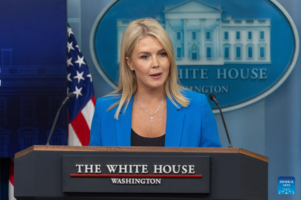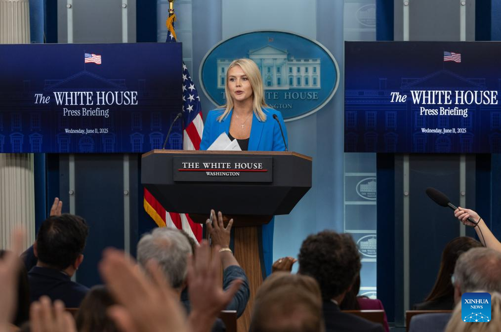 White House Press Secretary Karoline Leavitt speaks during a press briefing at the White House in Washington, D.C., the United States, on June 11, 2025. (Xinhua/Hu Yousong)
