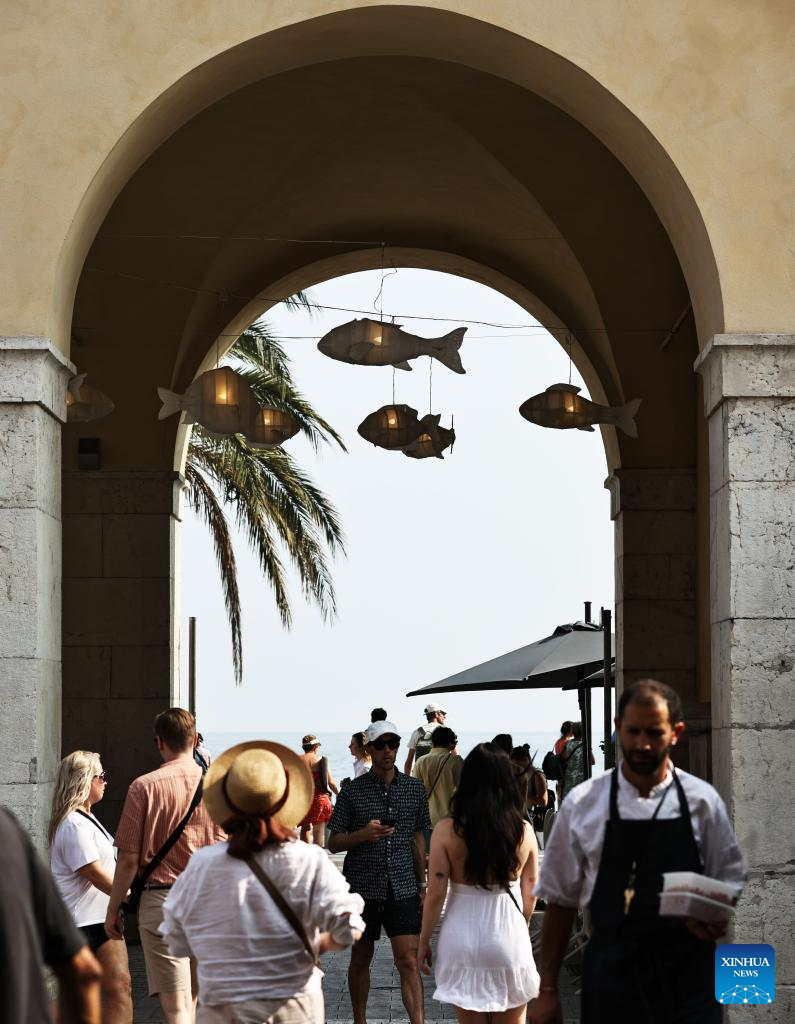 People walk on a street in Nice, France, June 10, 2025. The UNOC3 opened on Monday in Nice, a coastal city in southern France, under the theme of "Accelerating action and mobilizing all actors to conserve and sustainably use the ocean". (Xinhua/Gao Jing)
