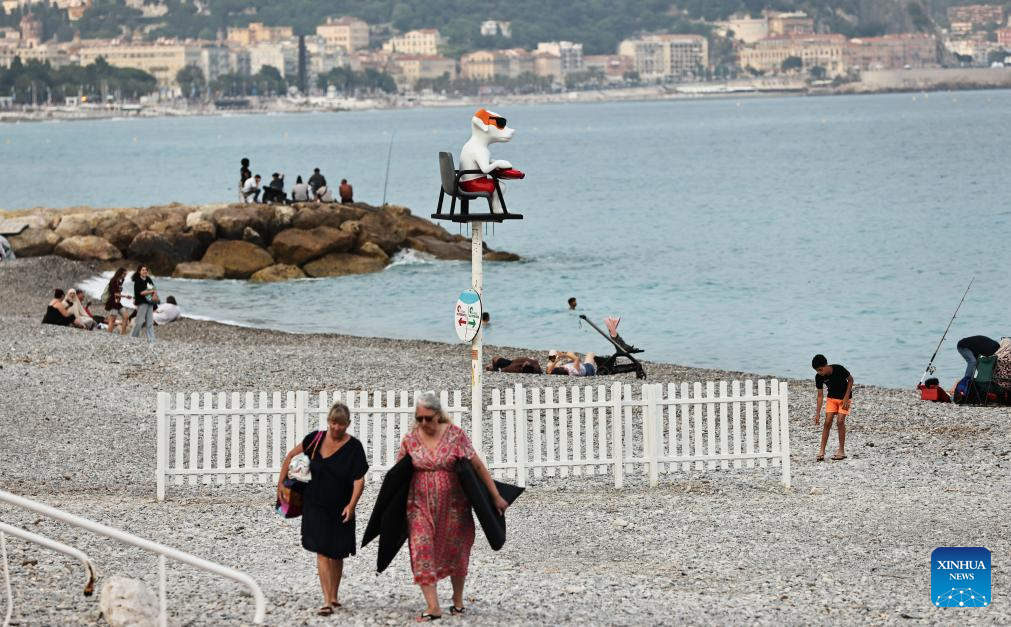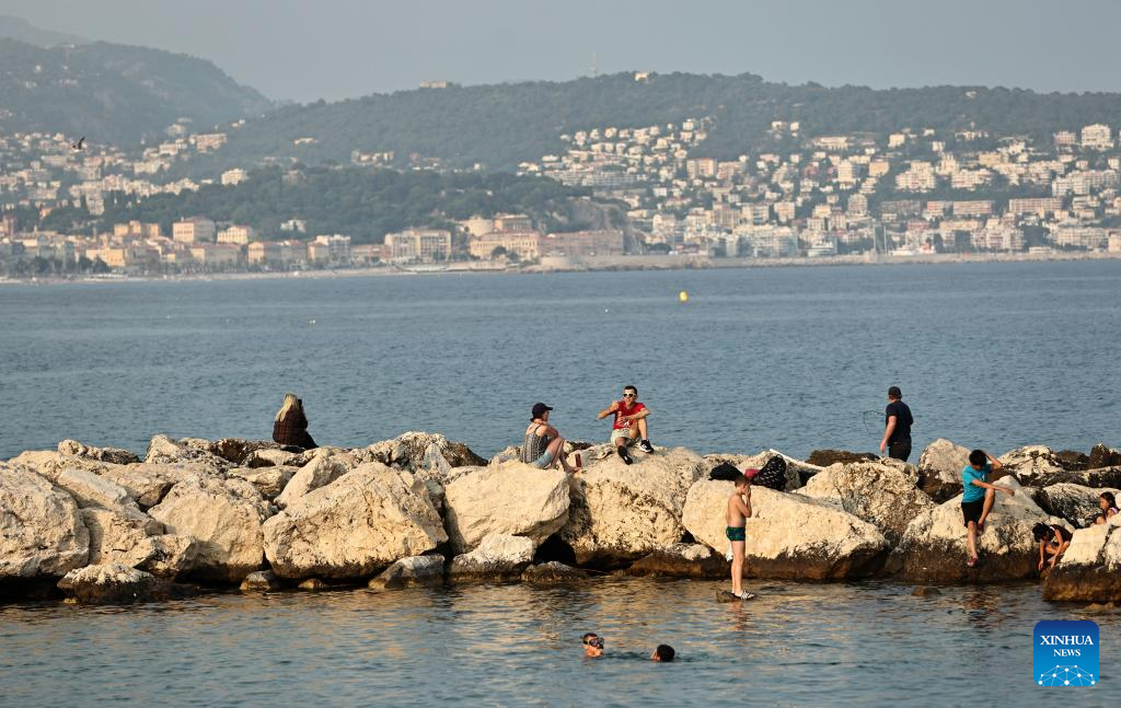 People enjoy their leisure time at the seaside in Nice, France, June 9, 2025. The UNOC3 opened on Monday in Nice, a coastal city in southern France, under the theme of "Accelerating action and mobilizing all actors to conserve and sustainably use the ocean". (Xinhua/Gao Jing)