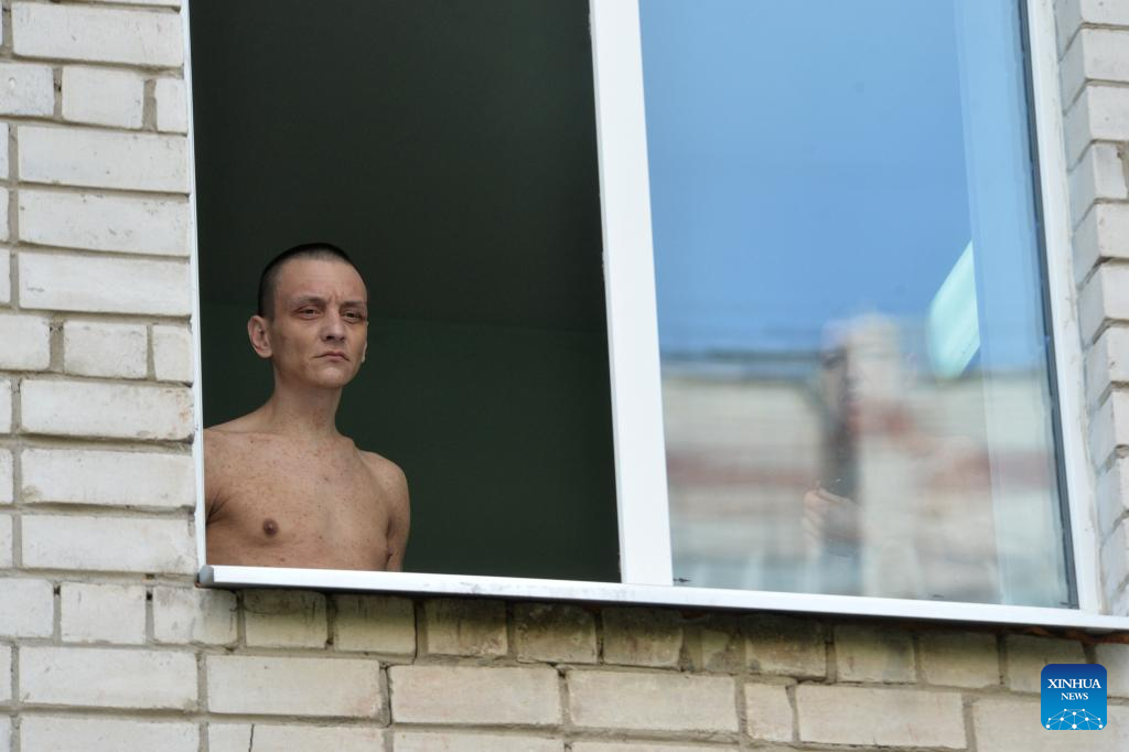 A Ukrainian prisoner of war looks out the window at a medical aid facility, June 12, 2025. Ukraine and Russia on Thursday carried out the second phase of a prisoner exchange involving seriously ill and severely wounded captives, according to Ukrainian authorities.