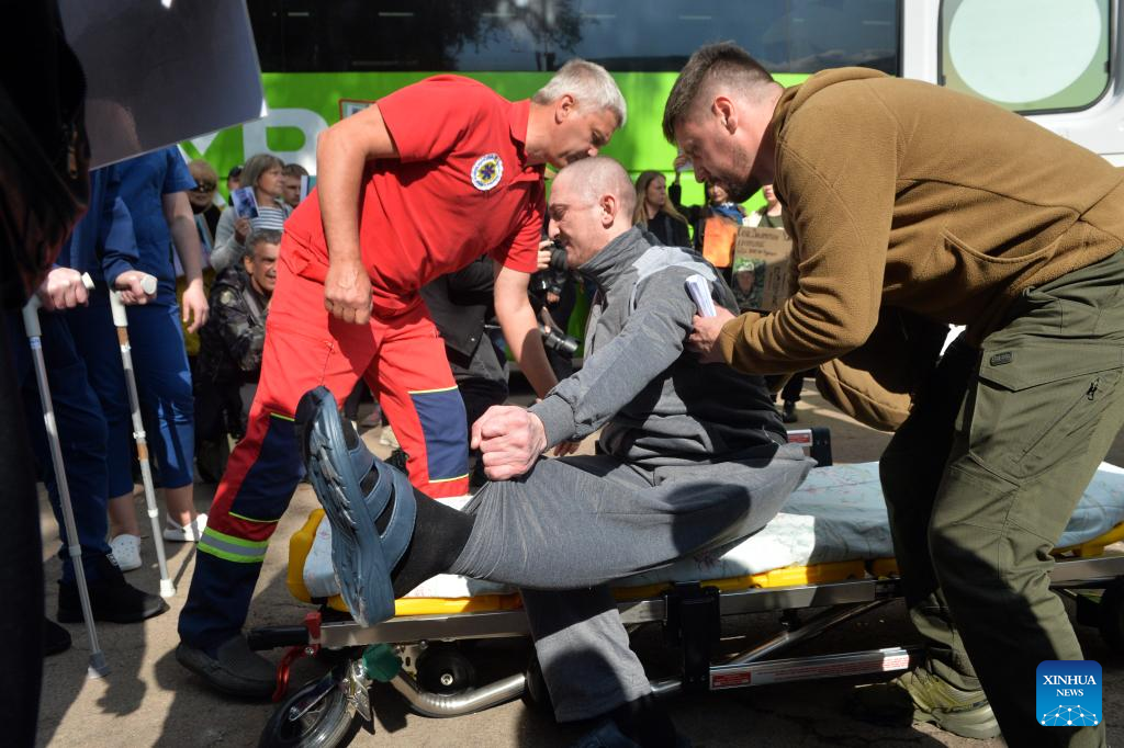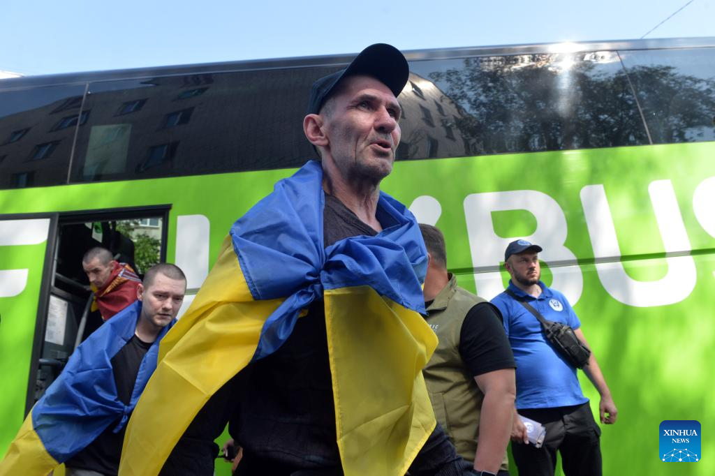 The exchange is a part of a broader prisoner swap between Ukraine and Russia, which started on Monday in line with an agreement reached in Türkiye's Istanbul last week. (Photo by Peter Druk/Xinhua)
