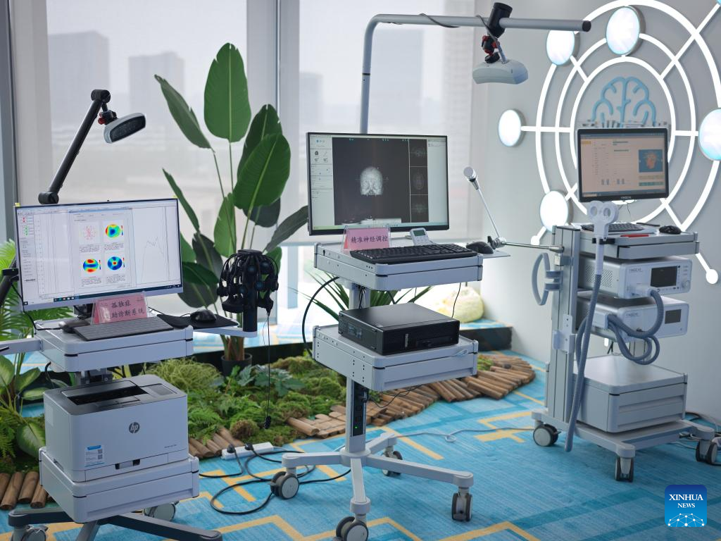 This photo taken on June 6, 2025 shows the therapeutic equipment developed by Chengdu Xinnao Technology Co., Ltd. in Chengdu, southwest China's Sichuan Province. (Xinhua/Xue Chen)
