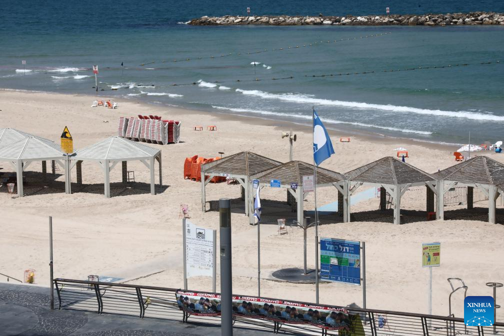 This photo taken on June 13, 2025 shows an empty beach in Tel Aviv, Israel. The Israel Defense Forces (IDF) confirmed early Friday in a statement that it had launched a "preemptive, precise, combined" attack on dozens of military targets, including nuclear targets in different areas of Iran, adding, "Iran is closer than ever to obtaining a nuclear weapon."