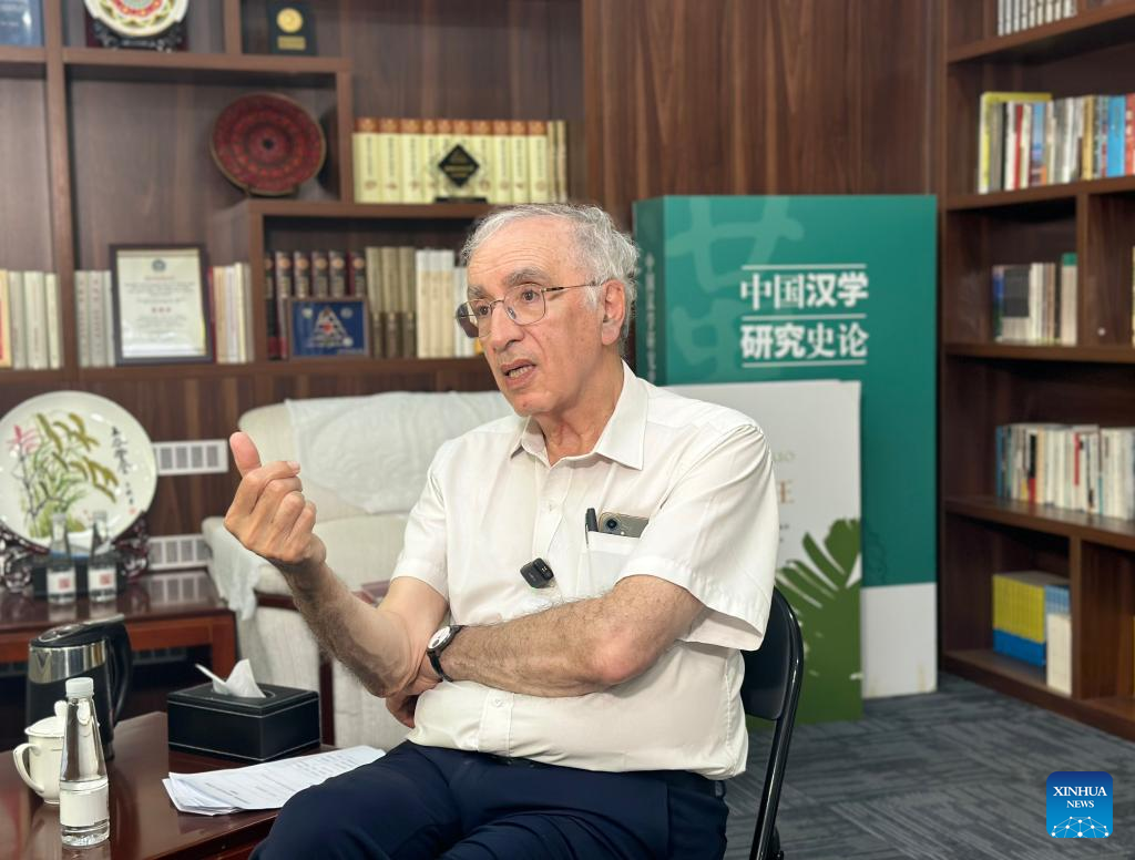 (250614) -- BEIJING, June 14, 2025 (Xinhua) -- Joel Bellassen speaks during an interview with Xinhua at the World Sinology Center of Beijing Language and Culture University in Beijing, capital of China, June 5, 2025. TO GO WITH "Feature: Stroke by stroke: A French sinologist and the Chinese characters that write his life" (Xinhua/Shi Yifei)