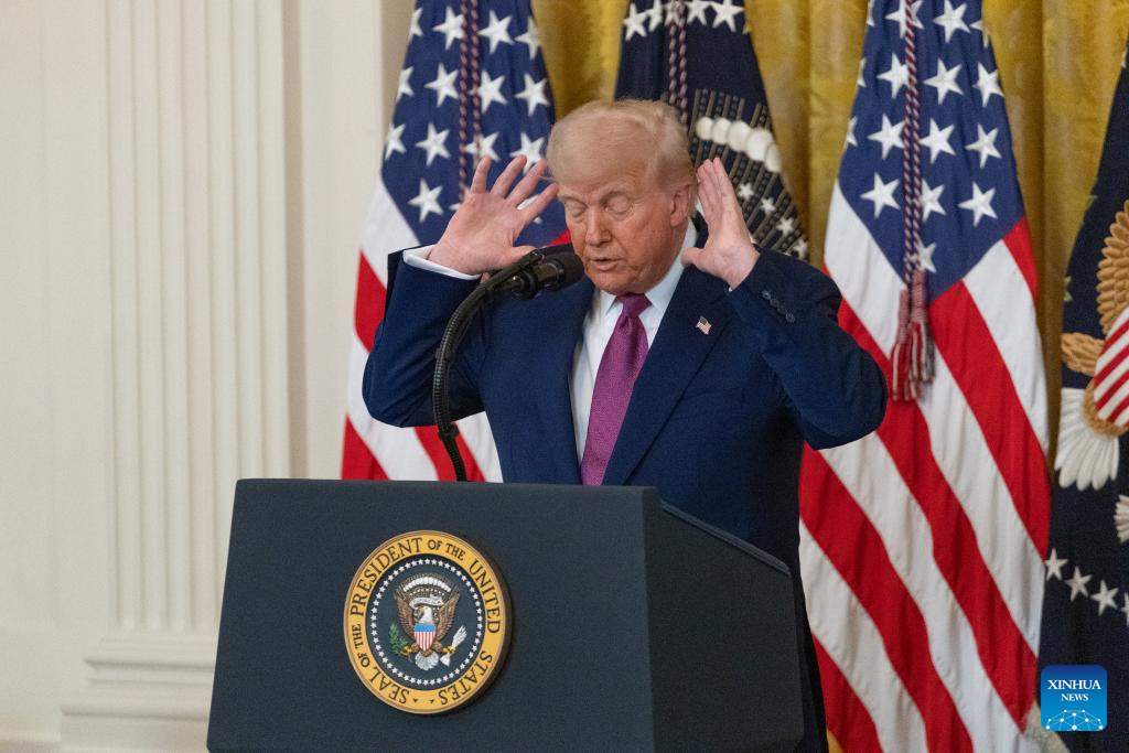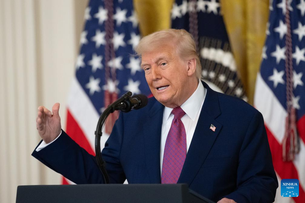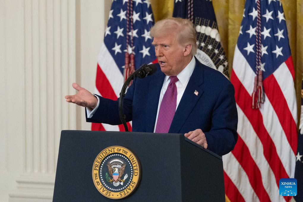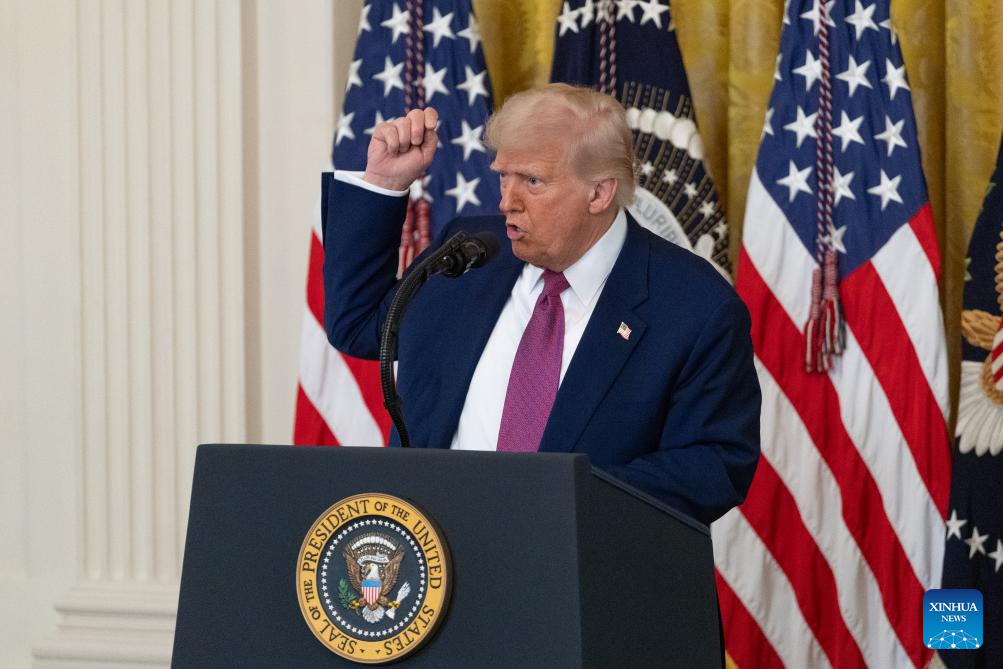 U.S. President Donald Trump speaks during a signing ceremony at the White House in Washington, D.C., the United States, on June 12, 2025. Trump moved on Thursday at a White House signing ceremony to eliminate California's nation-leading vehicle emissions standards, upending the strict rules that had become a template for states across the nation to realize their greenhouse gas ambitions. (Xinhua/Hu Yousong)