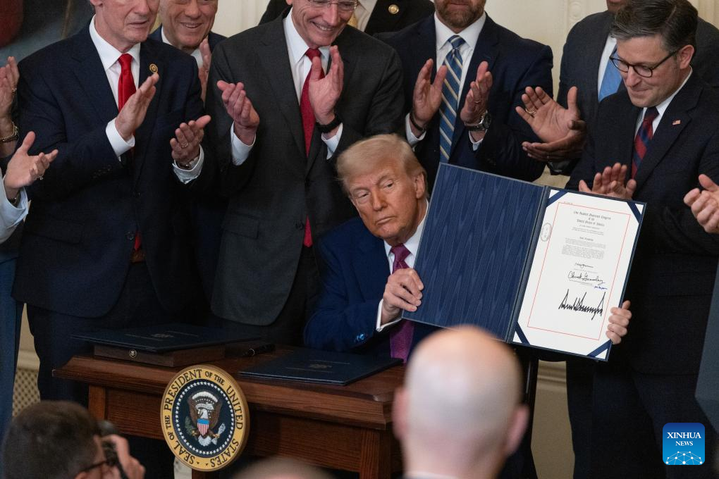 During the ceremony, Trump signed a congressional resolution that overturns a California state rule that would have phased out the sale of new gas-powered cars by 2035. The state makes up about 12 percent of the U.S. population. Its rule has also been adopted by 11 other states and Washington, D.C. The resolution was approved by Congress last month and aims to quash the country's most aggressive attempt to phase out gas-powered cars.