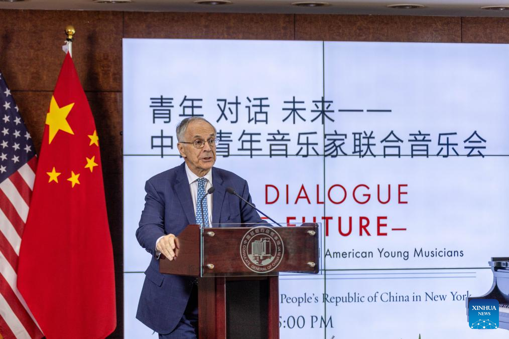 Clive Gillinson, executive and artistic director of Carnegie Hall, speaks at an event titled "Youth Dialogue for the Future" in New York City, the United States, on June 12, 2025. Young musicians from China and the United States Thursday jointly performed to an audience of around 200 guests at the Chinese Consulate General in New York. The event, titled "Youth Dialogue for the Future," focused on collaboration and diplomacy of the two countries. (Photo by Winston Zhou/Xinhua)
