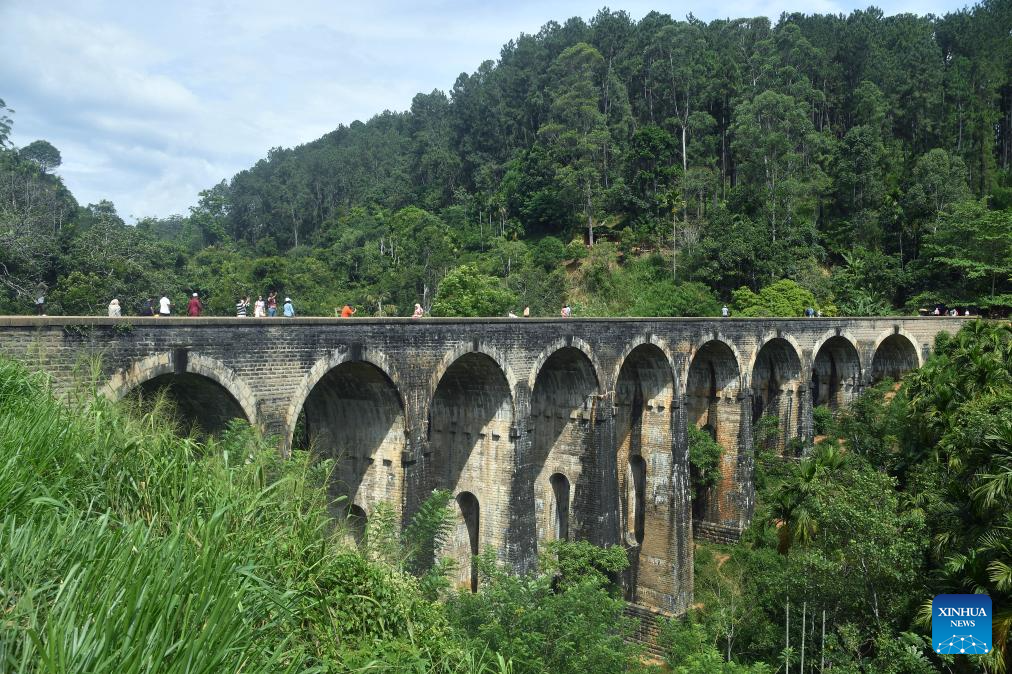 This photo taken on June 13, 2025 shows people visiting a nine-arch railway bridge built during the colonial era, in Ella, Sri Lanka. (Photo by Ajith Perera/Xinhua)
