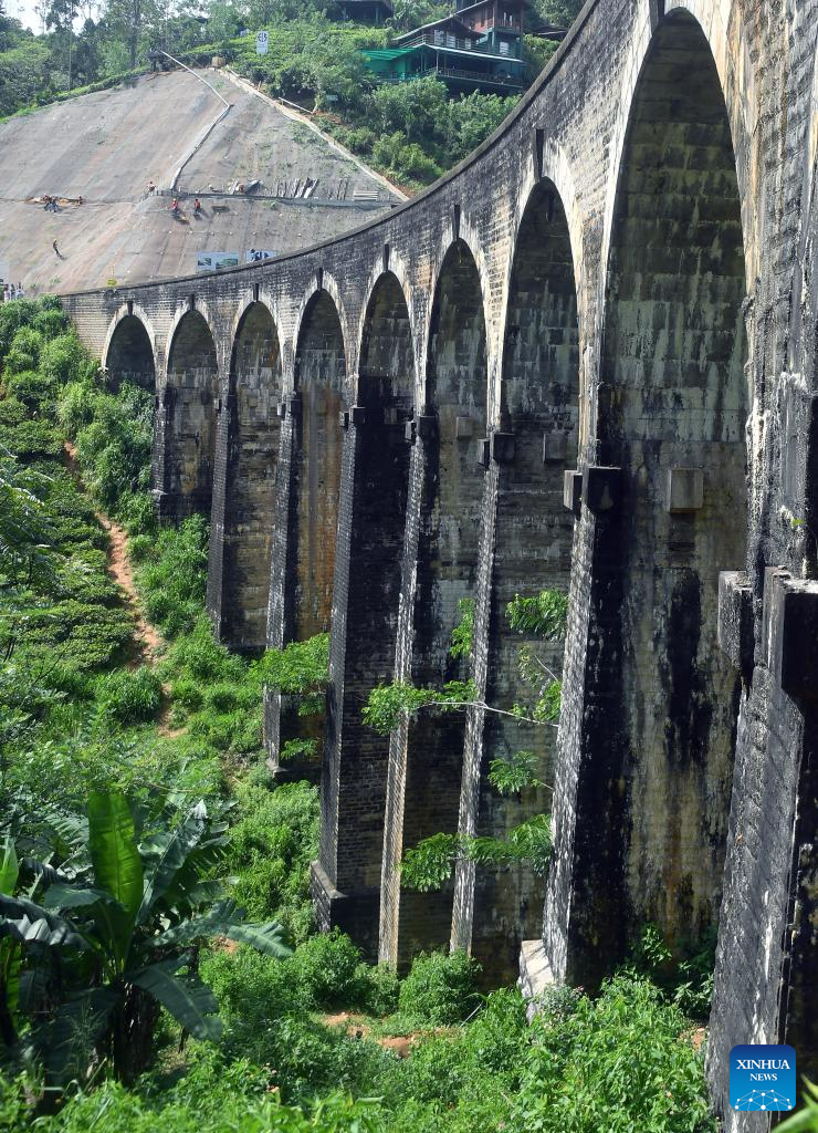 This photo taken on June 13, 2025 shows part of a nine-arch railway bridge built during the colonial era, in Ella, Sri Lanka. (Photo by Ajith Perera/Xinhua)