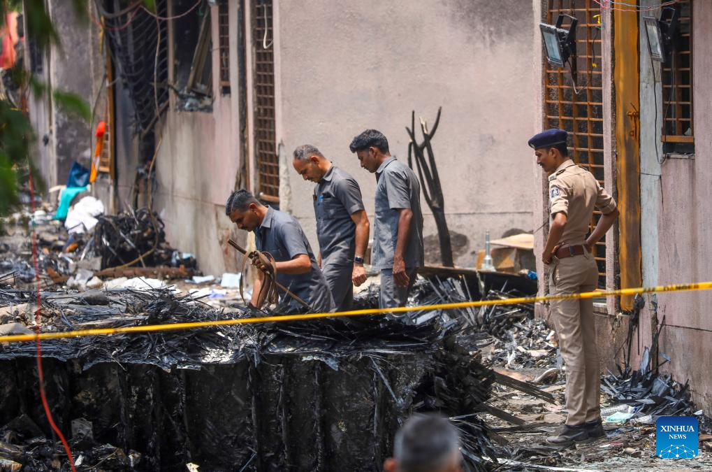 Forensic Science Laboratory (FSL) team collects evidence from the Air India flight AI 171 crash site in Ahmedabad, in India's western state of Gujarat, June 13, 2025. (IANS/Handout via Xinhua)