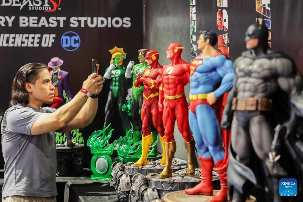 A man takes photos of superhero figures during the 22nd ToyCon PH 2025 in Pasay City, the Philippines, on June 13, 2025. The annual ToyCon PH (Philippine Toys, Hobbies, and Collectibles Convention) is a three-day event showcasing various action figures, art toys, trading cards, cosplay, comic books, and other collectibles for fans of all ages. (Xinhua/Rouelle Umali)