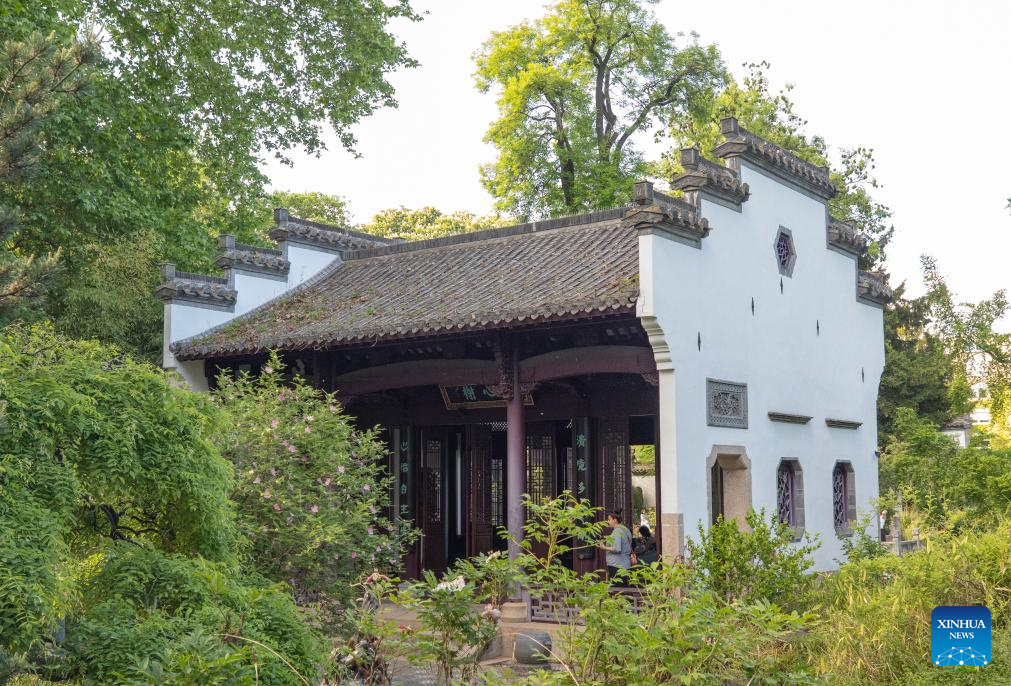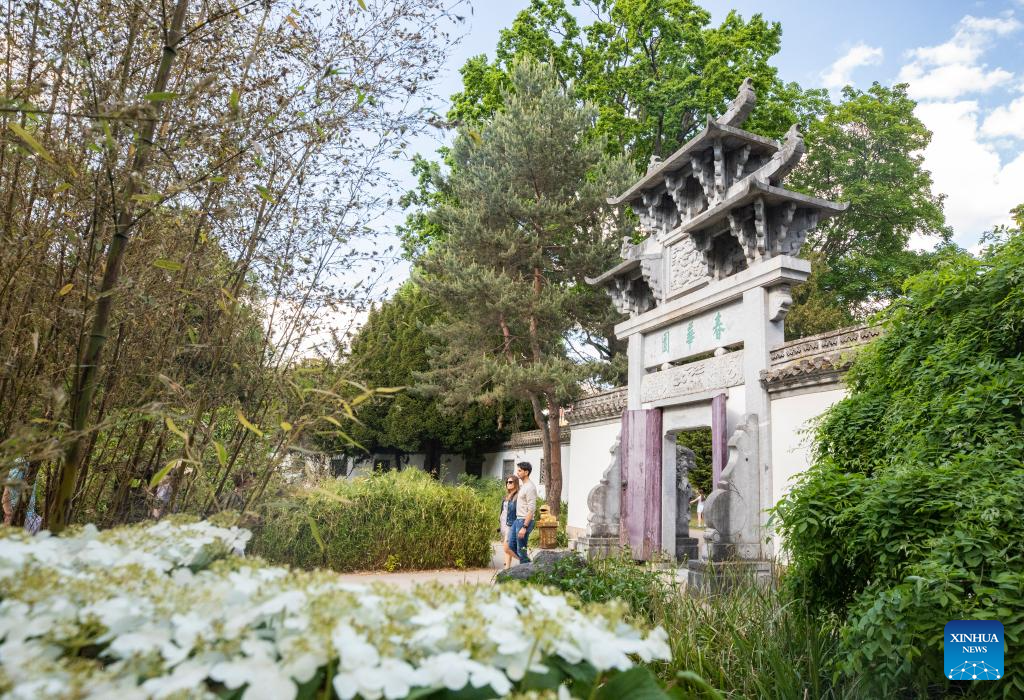 Tourists visit Chunhua Garden in Frankfurt, Germany, on May 11, 2025. (Xinhua/Zhang Fan)