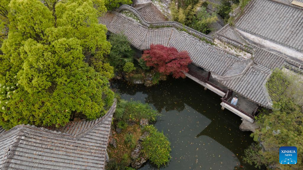 An aerial drone photo taken on April 10, 2025 shows a view of a classical Hui-style garden in Yixian County, Huangshan City, east China's Anhui Province. (Xinhua/Zhang Duan)