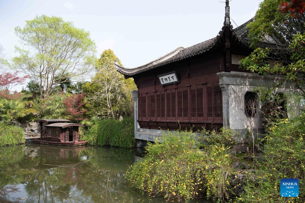 The photo taken on April 10, 2025 shows a view of a classical Huizhou-style garden in Yixian County, Huangshan City, east China's Anhui Province. In 1988, Chunhua Garden, a classical Hui-style garden, was designed and built in Frankfurt of Germany. It was designed and planned by Cheng Jiyue, an expert on Hui-style architecture of China, and his team members. The style of the garden was based on traditional Hui-style architectures such as the Tan'gan Garden and other traditional villages in China's Huangshan City.