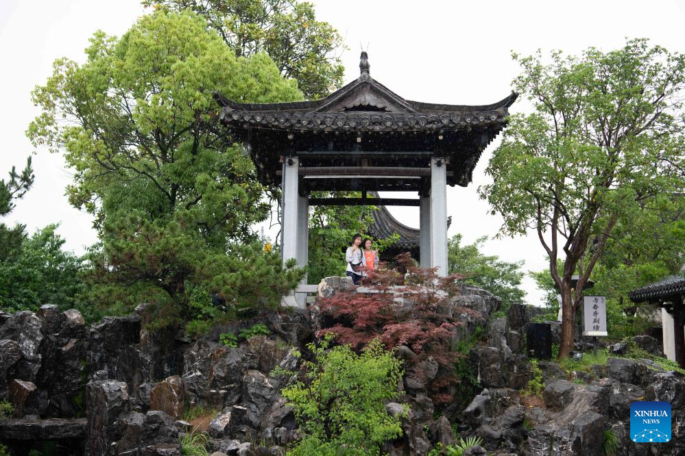 Tourists pose for photos in a classical Hui-style garden in Shexian County, Huangshan City, east China's Anhui Province, on June 11, 2025. (Xinhua/Zhang Duan)