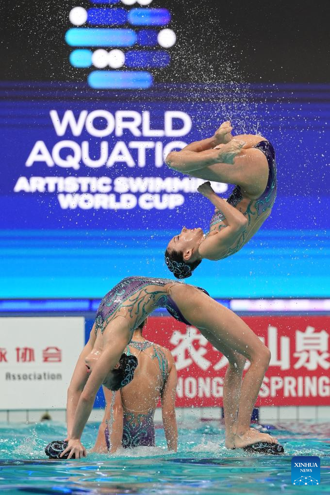 XI'AN, June 14 (Xinhua) -- China showcased commanding form at the World Aquatics Artistic Swimming World Cup Super Final here on Saturday, sweeping gold in the men's solo free, women's duet free and team free events. Spain prevented a complete Chinese triumph by claiming victory in the mixed duet technical - the sole discipline to elude the home team's grasp.