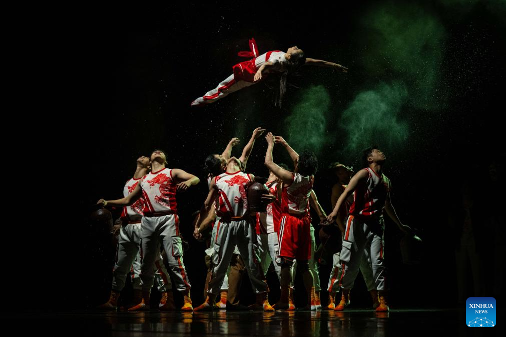 The dance drama "Dragon Boat" is staged at the Venetian Theatre in Macao, south China, June 14, 2025. (Xinhua/Cheong Kam Ka)