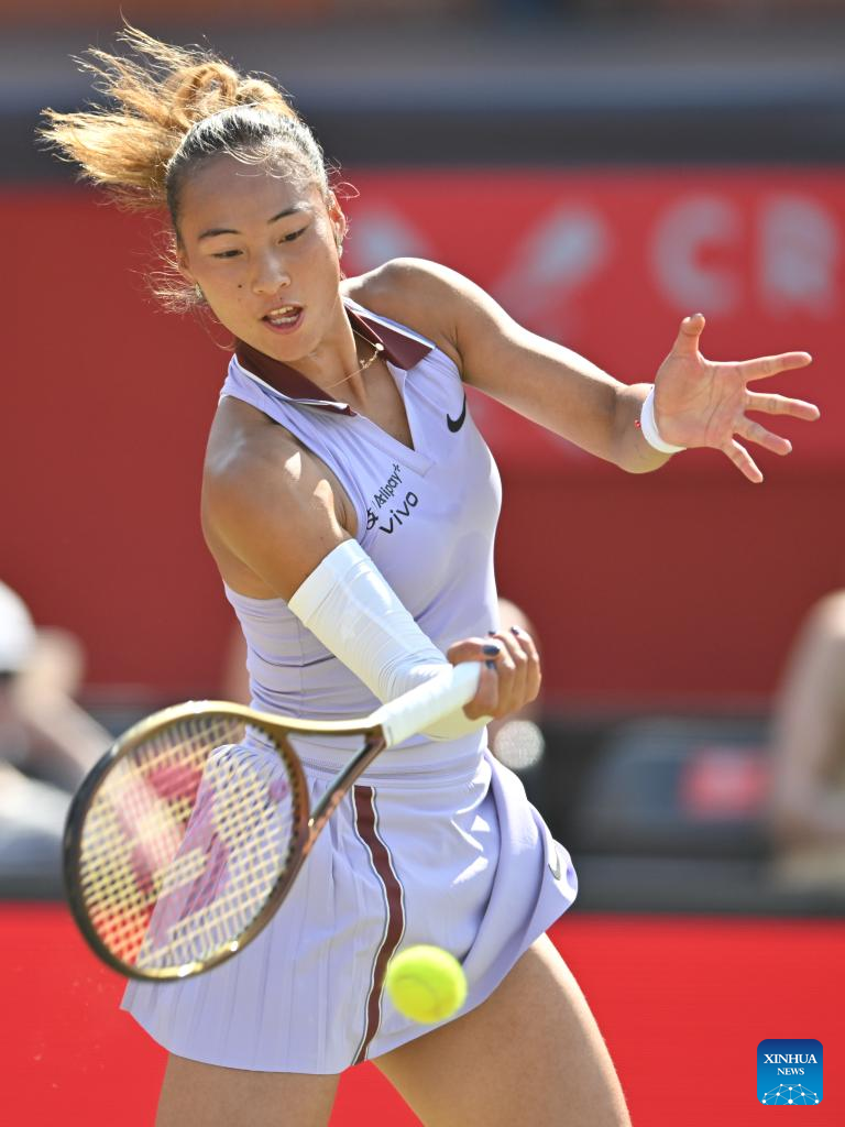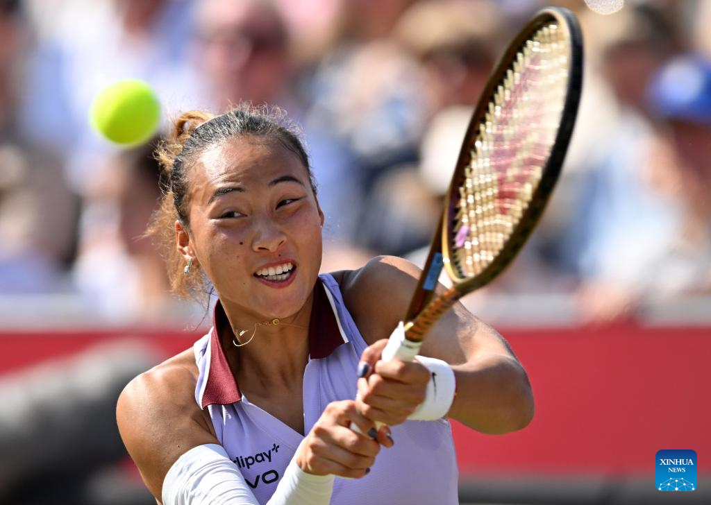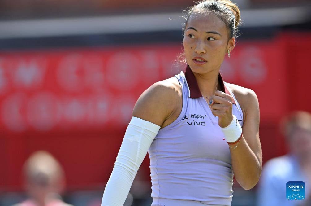 LONDON, June 14 (Xinhua) -- China's Olympic champion Zheng Qinwen ended her journey at the Queen's Club Championships as the world No. 5 lost to American Amanda Anisimova 6-2, 4-6, 6-4 in the women's singles semifinals here on Saturday.