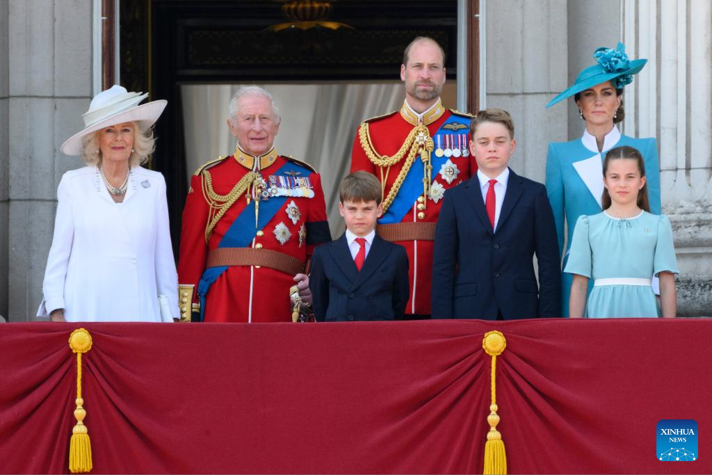 Members of the Royal Family appear on the balcony of Buckingham Palace during the Trooping the Colour parade to honour Britain's King Charles III on his official birthday in London, Britain, on June 14, 2025. (Photo by Ray Tang/Xinhua)