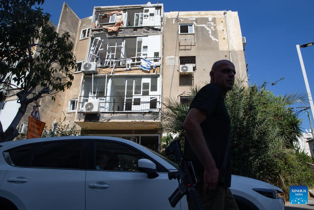 This photo taken on June 15, 2025 shows a building damaged by a missile fired from Iran in Bat Yam, central Israel. According to Israel's state-owned Kan TV News, the death toll from Iran's strikes since Friday has reached 14. (Xinhua/Chen Junqing)